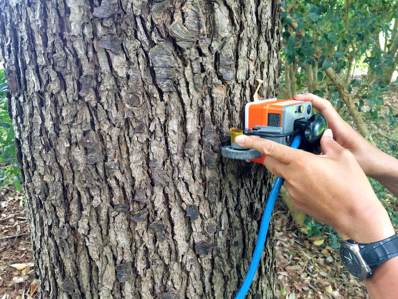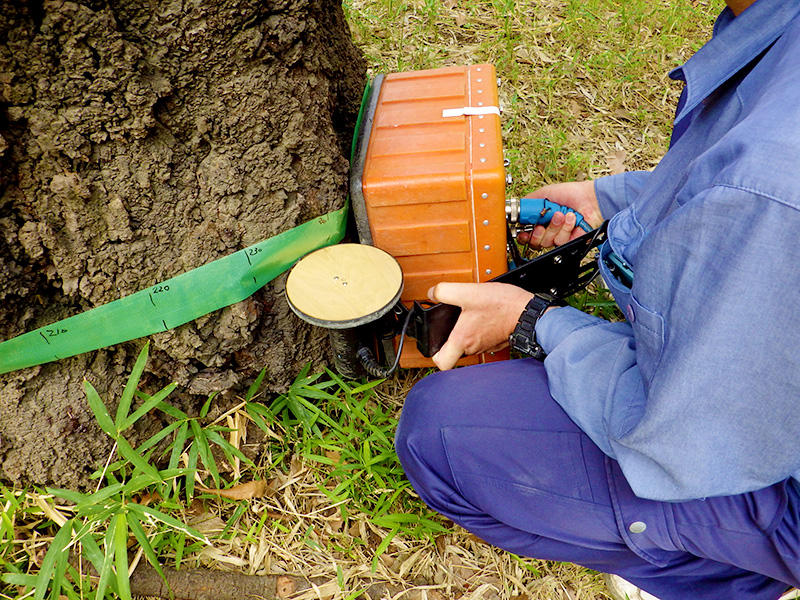 当社が提供する樹木の総合診断・管理サービスでは、小型レーダー装置を用いて樹木内部を非破壊で可視化し、倒壊を引き起こす恐れのある弱った樹木を調べる技術です。樹木内部の空洞や腐食の状態を、木を切り倒さずに早期に見つけ、美しく、また災害に強い街路樹の保全を支援します。