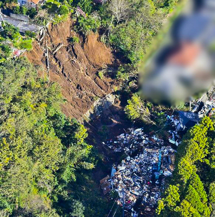 - 斜面上・斜面内の適正な雨水排水や、斜面上の樹木や擁壁などの維持管理がなされていない可能性が高い