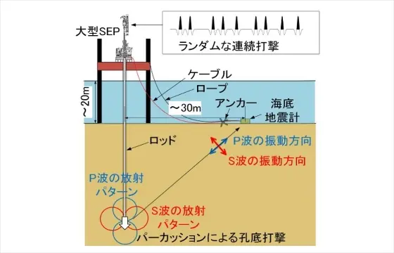 洋上風力発電の風車は耐震設計を行う必要がありますが、この耐震設計を行うために必要となる海底の地盤データを取得する調査法 (PS検層) は、従来手法では大規模な調査船を用いる必要があったため、非常に高価かつ適用できる水深に制限がありました。また調査データの品質が悪くなりがちなどの課題もありました。