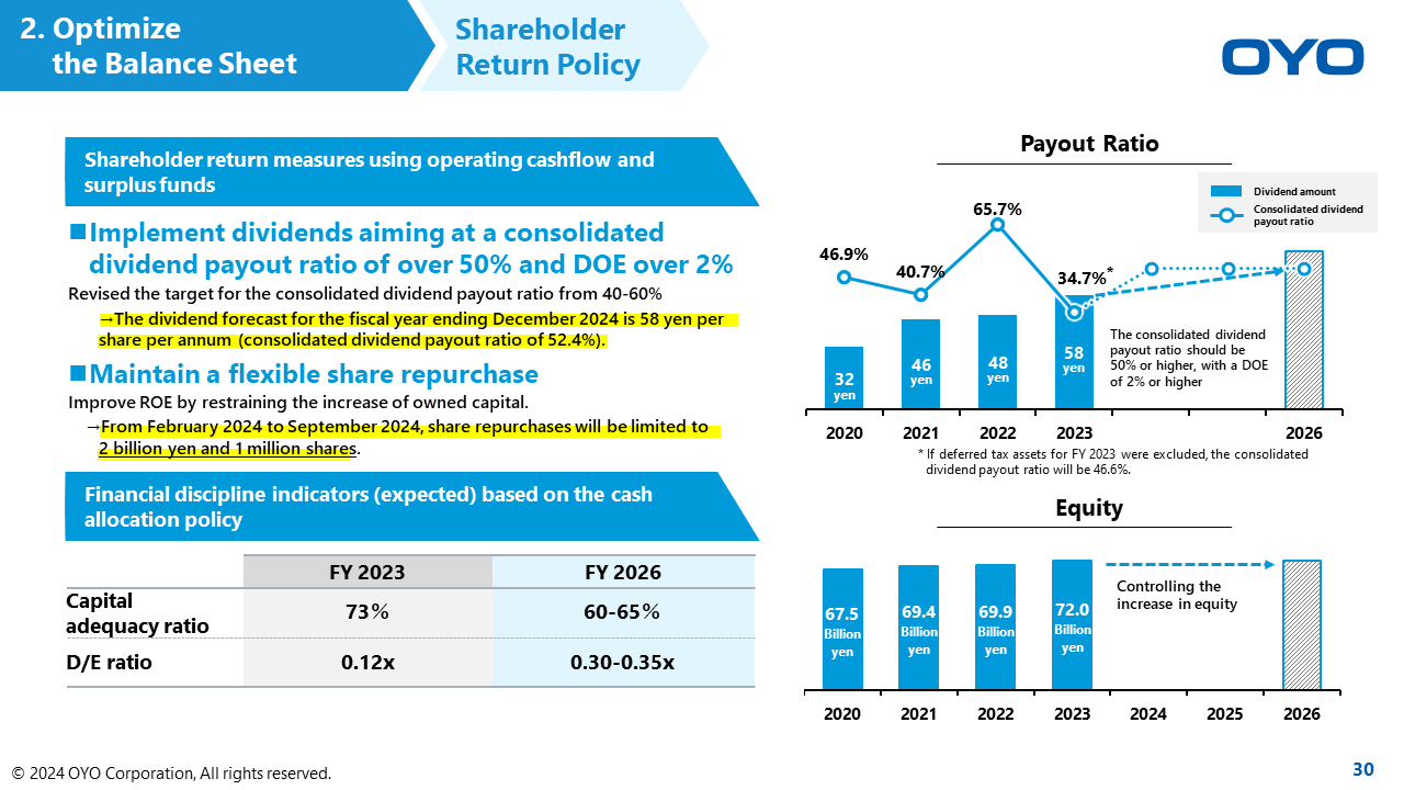 Furthermore, in order to improve ROE by limiting the increase in equity, we aim to maintain a flexible share repurchase limited to 2 billion yen and 1 million shares.