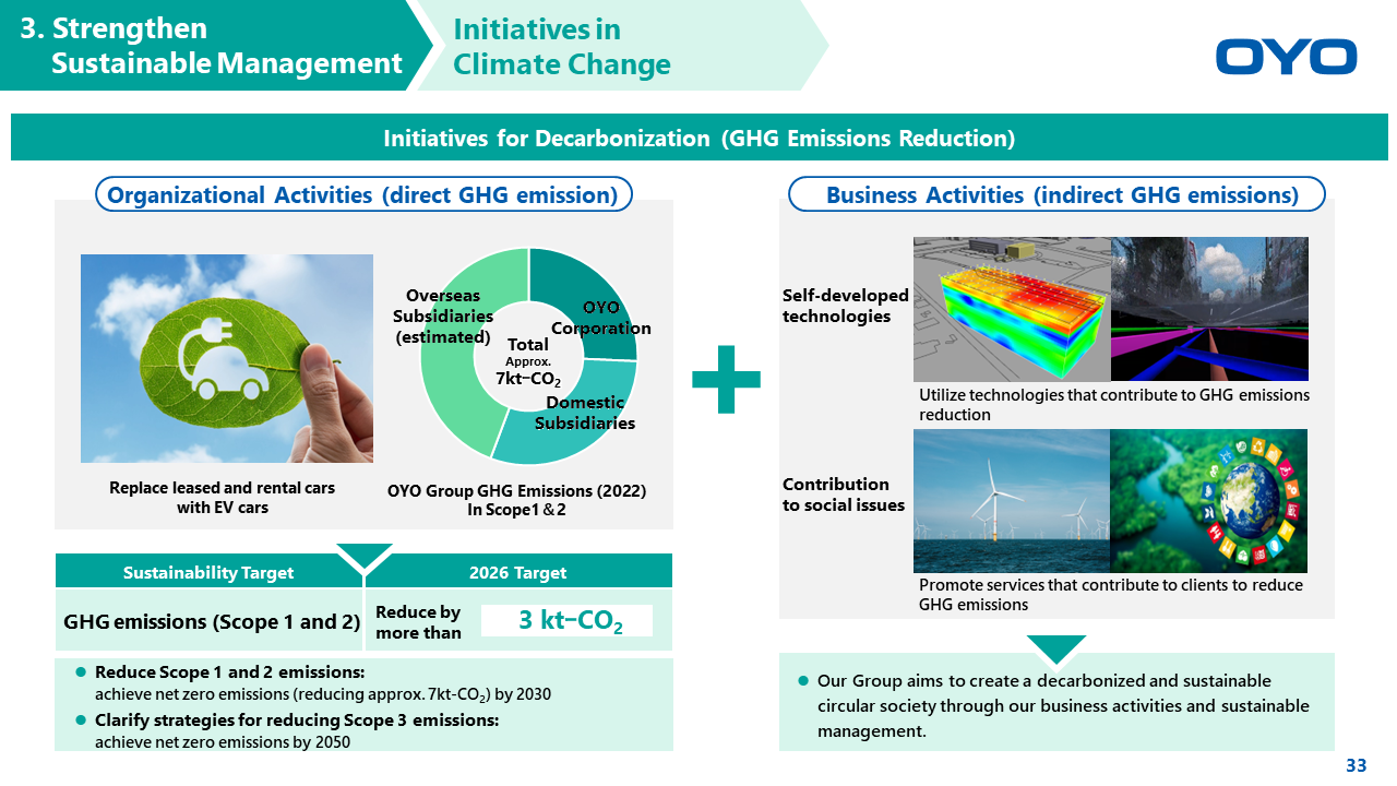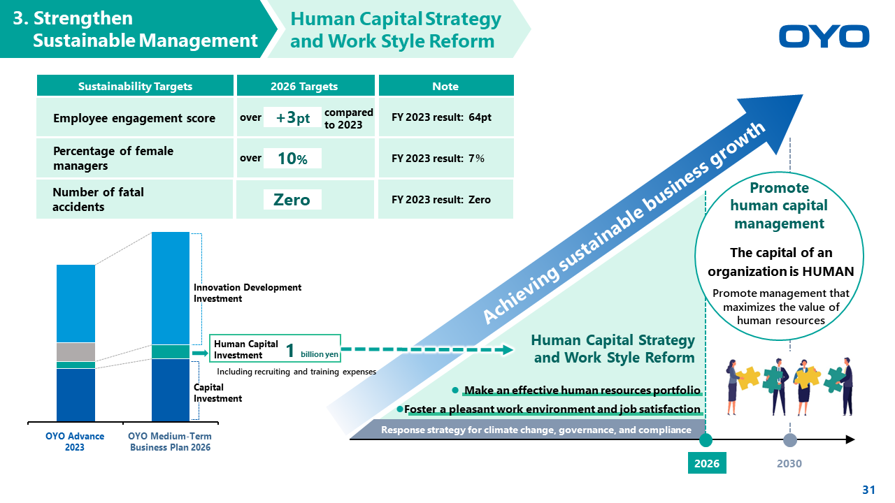 In February 2024, the OYO Group established "OYO Sustainability Vision 2030" and "OYO Medium-Term Business Plan 2026".