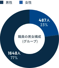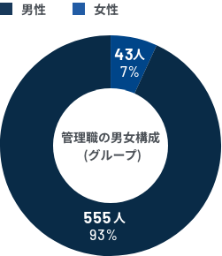 当社グループ全体における社員の女性比率は約24.2%で、管理職における女性比率は9.4% (管理職531名のうち女性は50名) です。