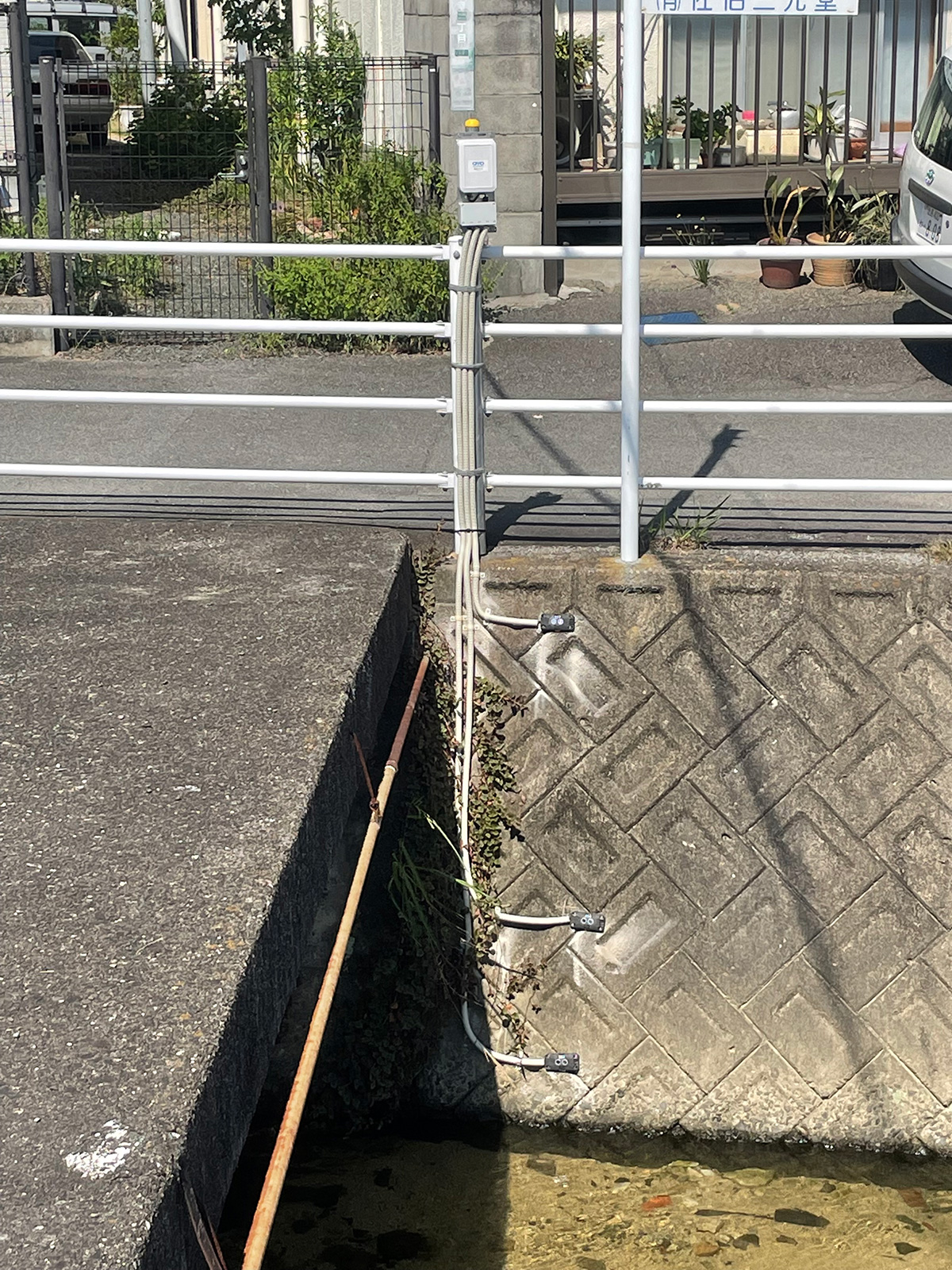 通学路にかかる小河川に冠水センサーと監視用カメラを連携させ、河川の水位状況を遠隔監視するシステムを設置しました。小学校の同意の上で、愛媛大学と協働で行いました。このシステムにより、豪雨時の巡回する教員の負荷と危険性の削減に貢献しています。