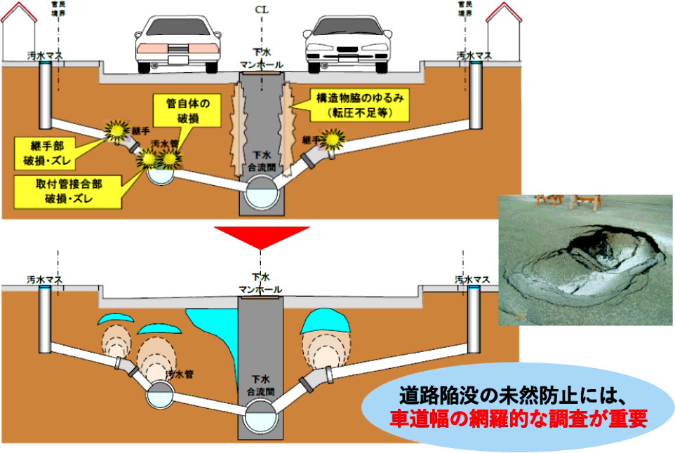 埋設管の老朽化などによる道路の陥没事故が多発!