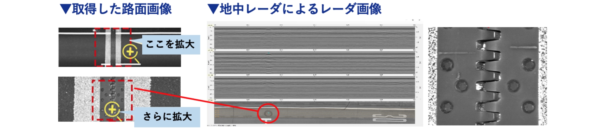 ・地中レーダで、深度2m程度までの空洞・埋設物の探査が可能(※地盤条件、地盤の飽和度によって異なります)