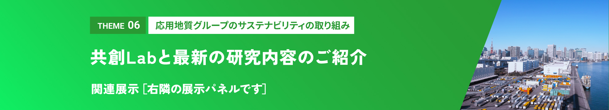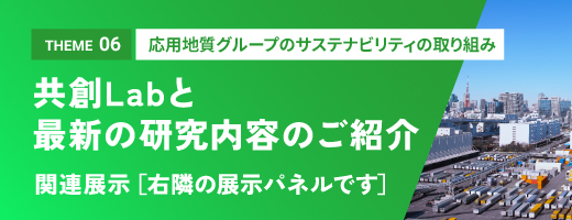 本パネルでは、オープンイノベーションによって社会・環境課題を解決し、SDGsの目標達成をめざす応用地質グループの取り組みの一部を紹介いたします。