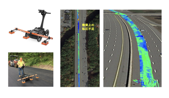 従来の舗装の密度管理では、コア採取による破壊を伴う試験によって行われるため、時間および補修コストがかかることが課題となっていました。
