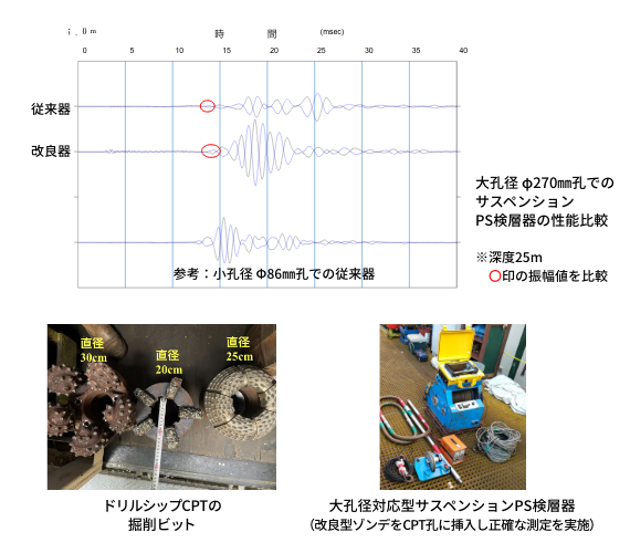 これまで、掘削船 (ドリルシップ) のCPT孔はボーリング孔よりも大孔径であるため、PS検層の測定精度が悪いという問題点がありました。