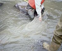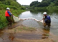 | 魚類生態系 | 外来魚の効率・効果的な防除方法を提案するために、貯水池やため池に生息する外来魚の分布、生活史、捕獲方法、個体群動態を調査研究しています。![]() | |