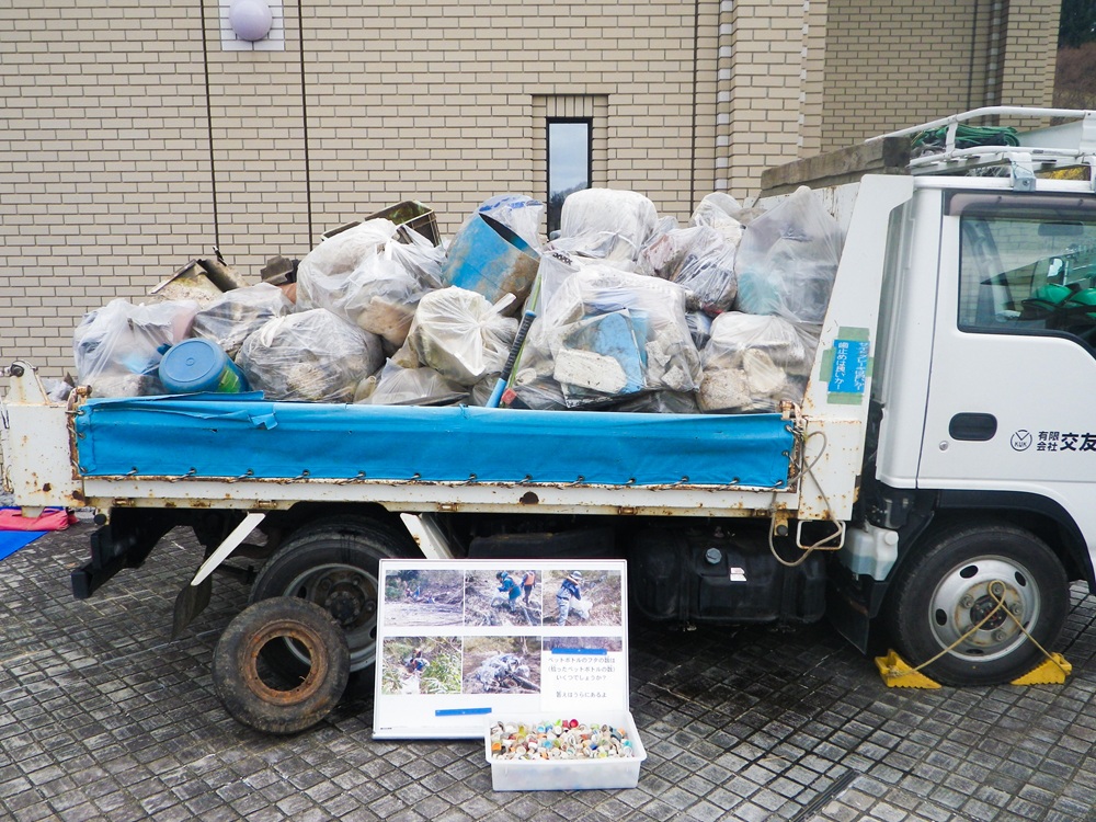 当社社員は、湖岸に打ち上げられたごみの回収を行いました。発泡スチロールや空き瓶などさまざまななごみが見受けられ、なかでも今年はペットボトルが多く回収されました。