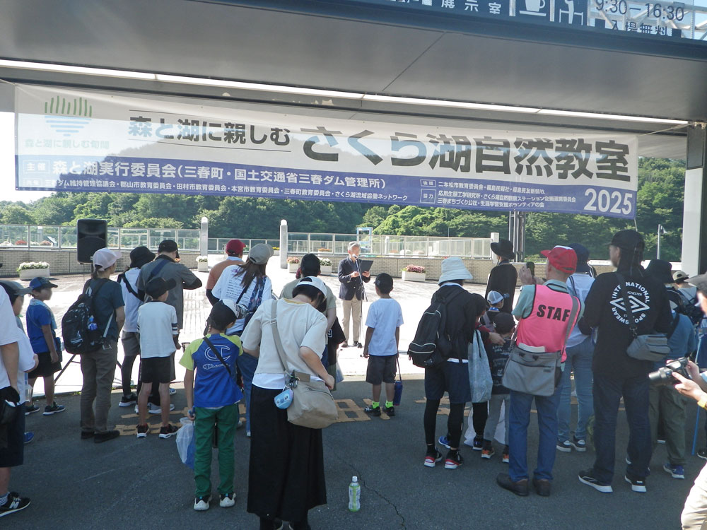 この自然教室は、三春ダム (さくら湖) 周辺の自然に親しみながら、水辺の環境やダムの役割、生物多様性について楽しく学べる地域参加型のイベントです。福島県三春町と国土交通省東北地方整備局三春ダム管理所の主催で、今年で27回目の開催となりました。