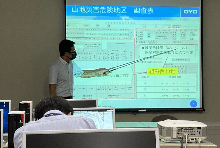 全国の自治体や民間企業といったお客様に対し、業務支援システムの導入を通じて抱えている課題を解決していく。そんな業務効率化を図っているのが、情報システム事業部です。中でも私が主に携わっているのは、治山・森林分野のシステム設計構築です。特に開発をおこなう治山業務システムでは全国シェア1位を獲得し、ありがたいことに多くのお客様にご利用いただいています。そのため、全国各地へ保守や打ち合わせのために出張することも多いんですよ。