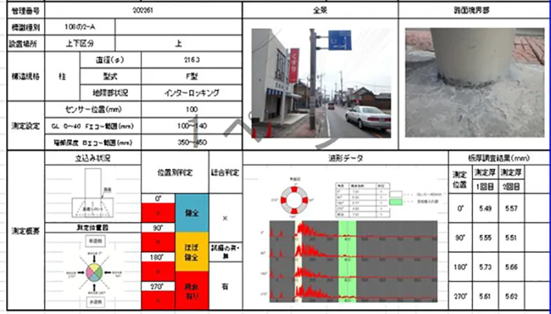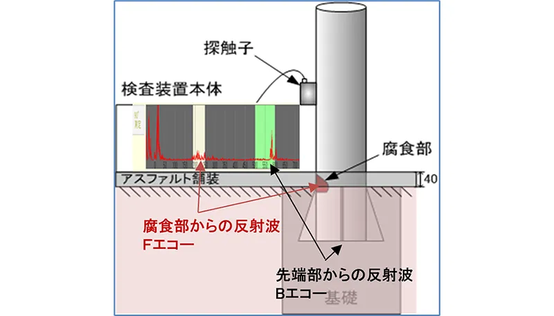 道路標識や照明柱等の地際部における腐食損傷程度を非開削・非破壊で容易に診断可能!