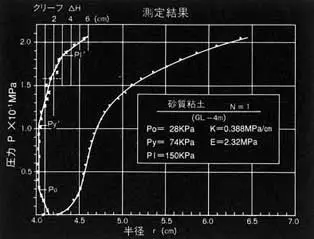 ボーリング孔内にゴムチューブを挿入し、高圧ガスによる圧力水を注入することによってゴムチューブを加圧膨張させることで、圧力と孔内におけるチューブの膨張量の関係から地盤の変形特性を求めることができます。