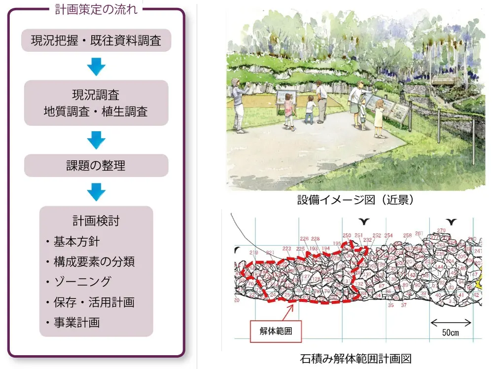 個々の史跡の特徴を活かした保存と活用のための計画をご提案します。