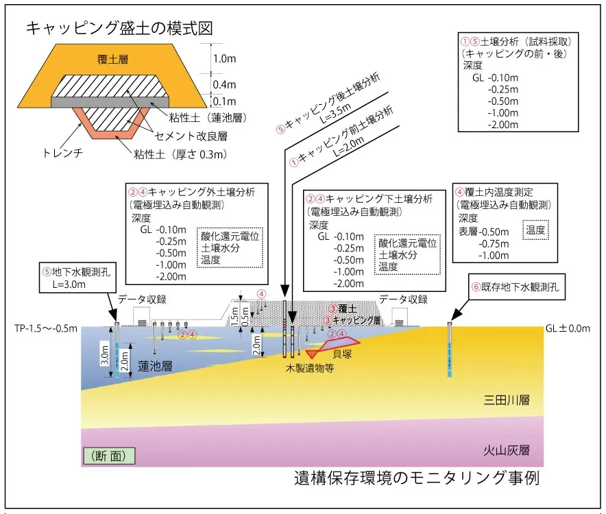 保存工事終了後の経過観察は、遺構の保存やメンテナンスのために重要です。整備計画立案のためにモニタリングが必要な場合もあります。