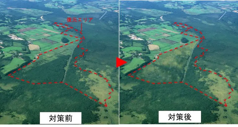 その結果、湿地が徐々に回復し、湿原由来の動植物も回帰するようになってきました。また、湿地が持つ遊水機能が回復することで、潜在的な洪水リスク低減にもつながることが期待されます。