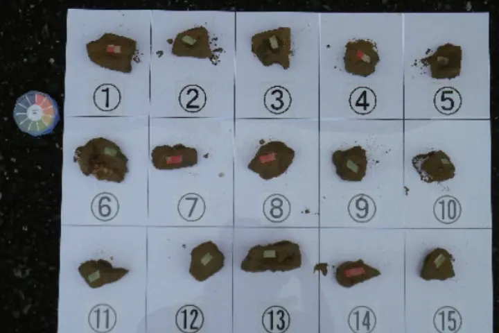 前日夕方に検体を受付けした場合、最短で翌日午前中に分析結果を出すことが可能です。さらに、トンネル工事の現場においては、地質技術者による地質評価 (掘削中のトンネル切羽の地質観察により、工事の安全や進捗に影響する地質の診断を行うこと) と併せて迅速公定法分析を行うことにより、施工業者の技術的判断を高め、対策土量の増加やスケジュールの遅延といった施工リスクを低減する付加価値の高いサービスを提供しています。