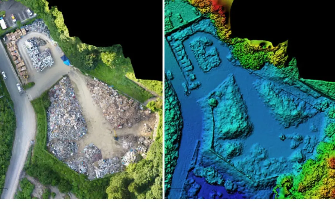 最新ICT、ドローンを用いて仮置き場の廃棄物量を迅速に算出